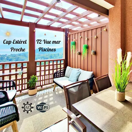 "Smash Azur"Cap Esterel-Vue Mer-Clim-Padel apartment looks out onto the sea and comprises a living room and a fully equipped kitchen.